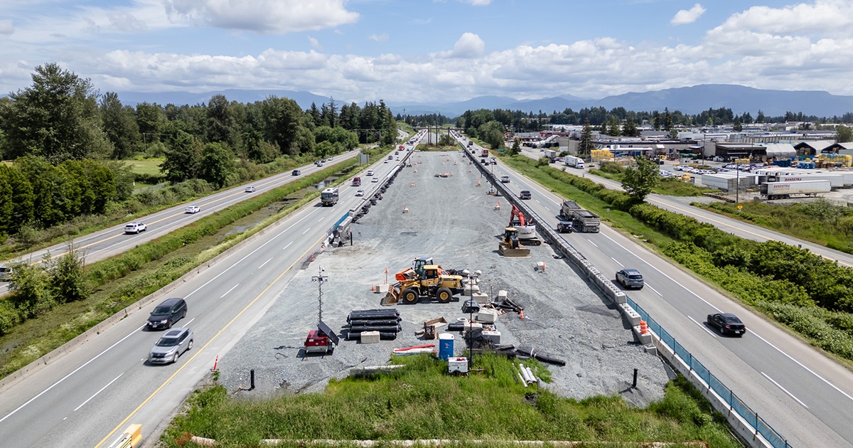 This work is part of the Fraser Valley Highway 1 Corridor Improvement Program, facilitating efficient goods movement and improving safety and reliability in the Fraser Valley.